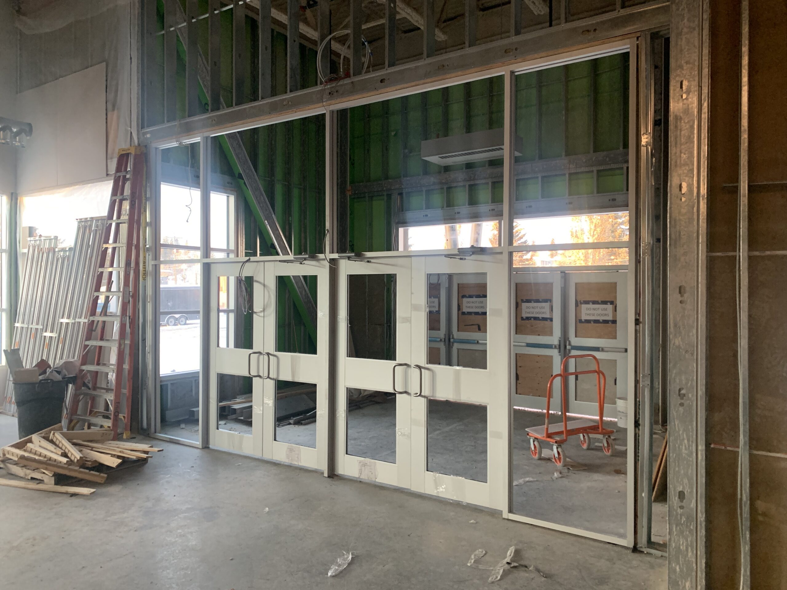 - The interior doors have been installed at the new west entrance.