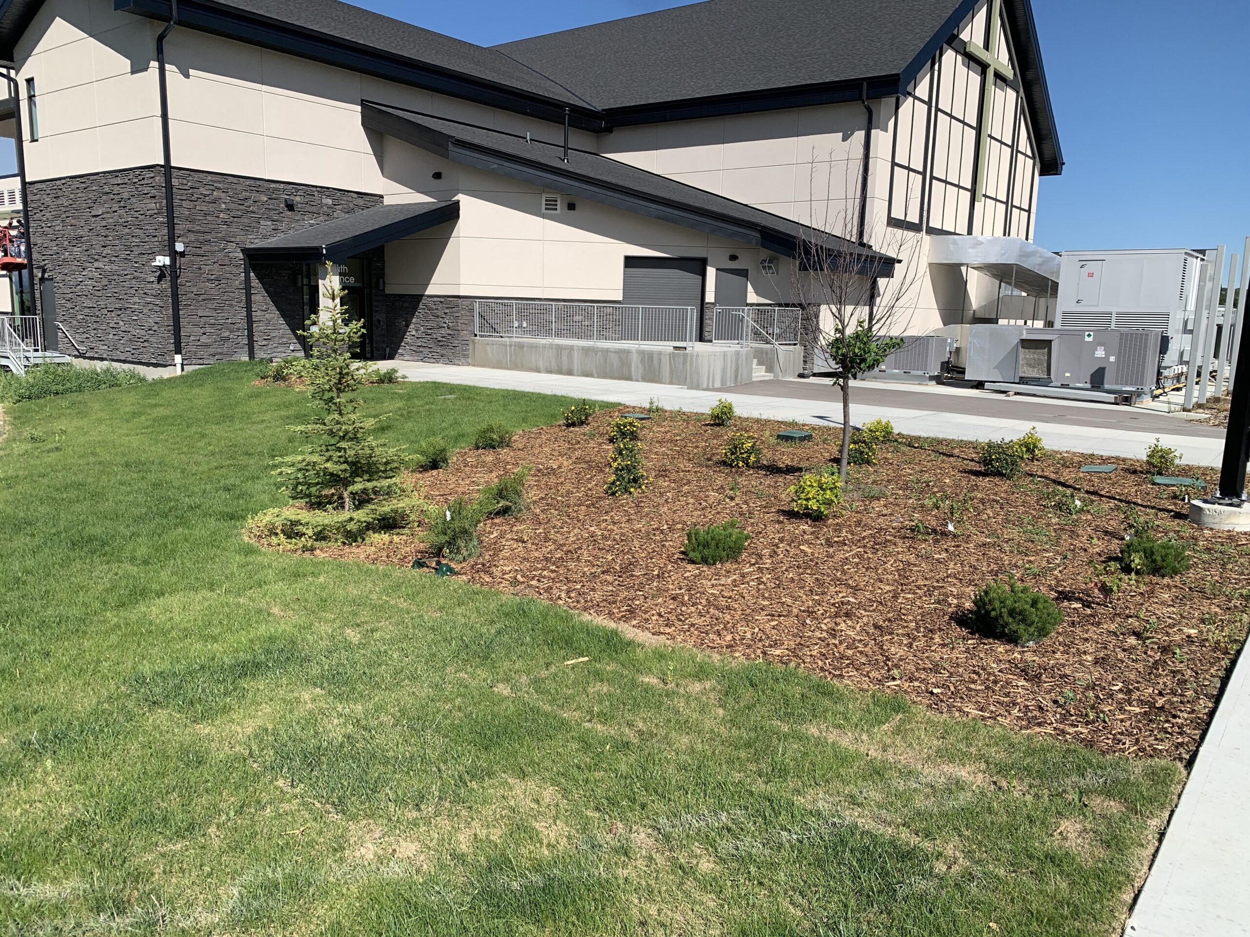 - Landscaping at Bearspaw Campus is progressing and it is starting to look green! Some portions of the slope will need to be re-seeded. It will take time for the grass to fully root and for the trees to grow.